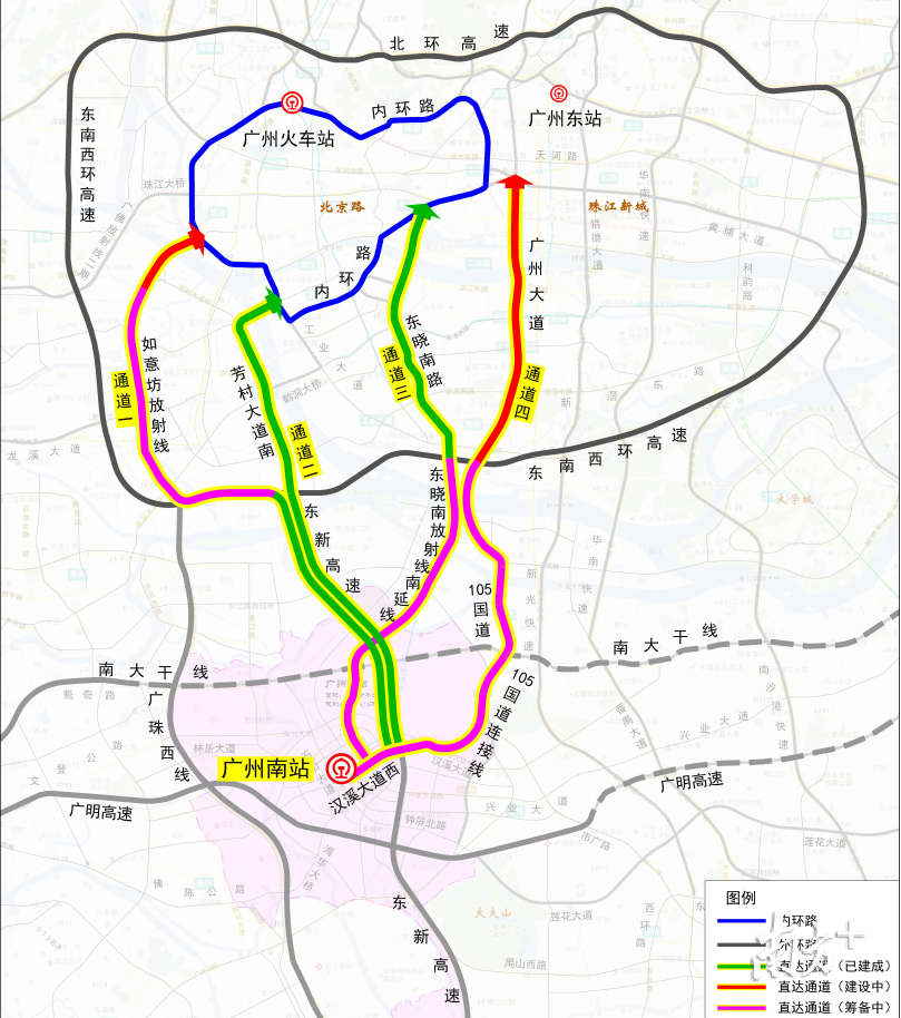 通道四:G105(快速化改造,12.7公里)-廣州大道(快速化改造),19.5公里,需時20分鐘。